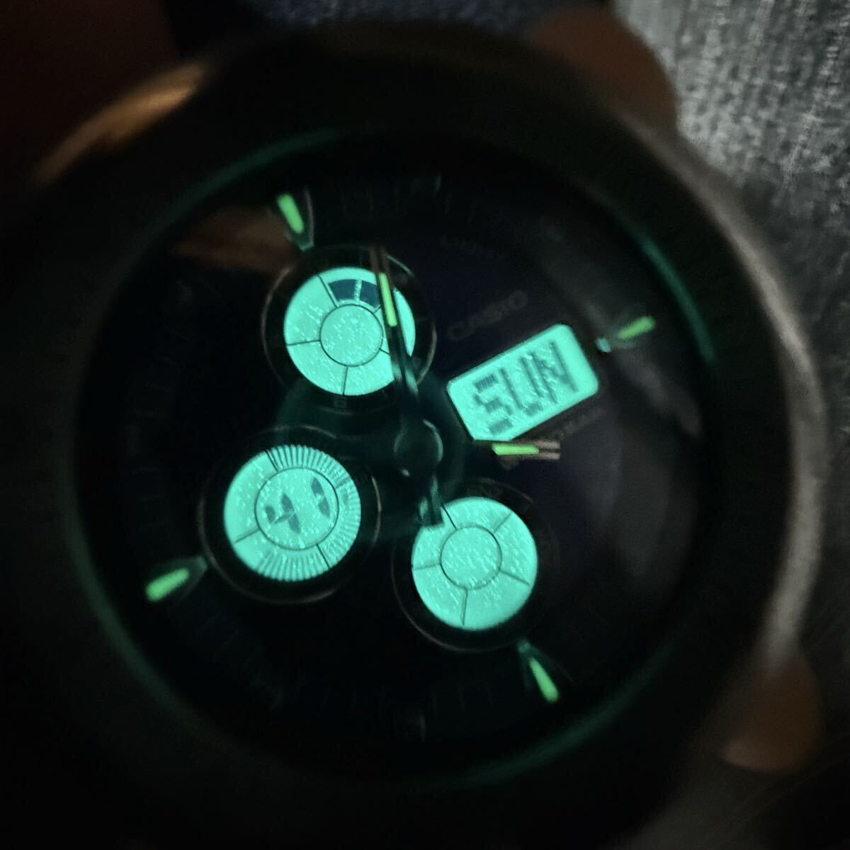 風防に、ごく薄い線傷があるように見えます。画像で状態を確認してください。