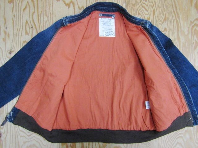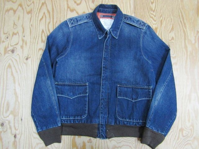 程よいウォッシュ加工のインディゴデニムのA-2ジャケット