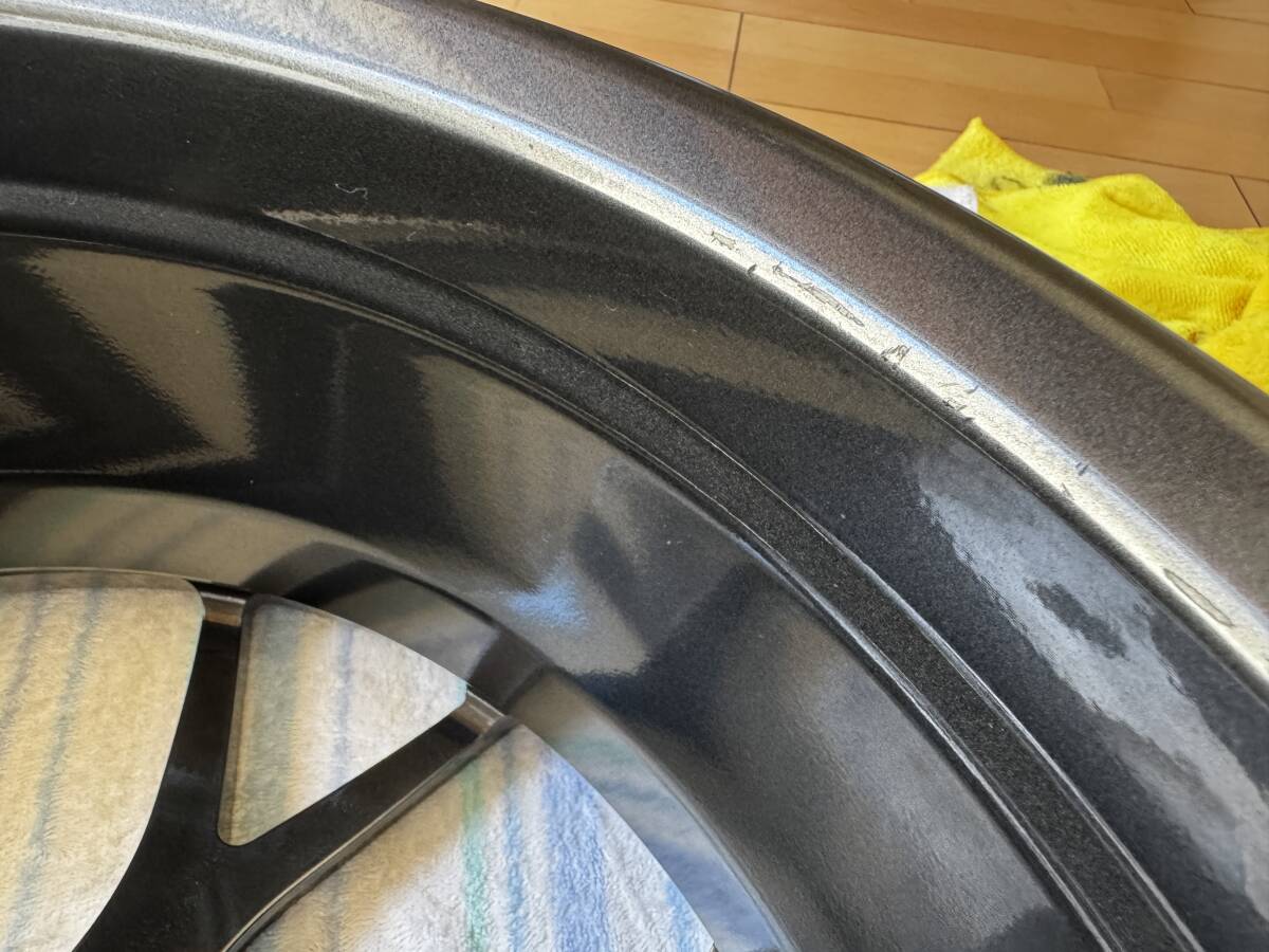 ホイール裏側リムにはタイヤ脱着の際に付いたと思われる傷やディスク裏側には飛び石による傷がありますが、車に装着した時には見えないため気にはならないと思います。