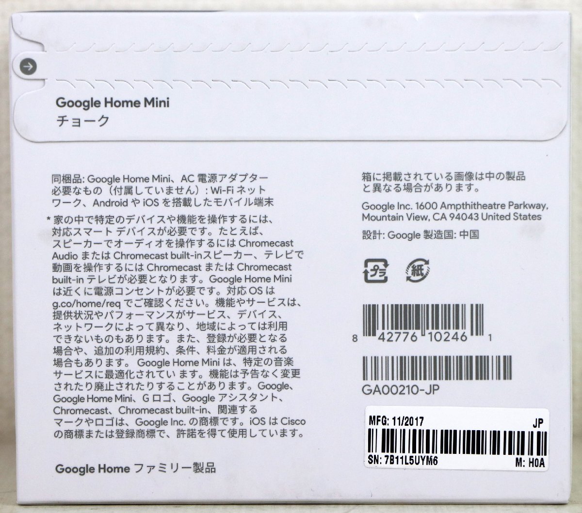 Product name: S♪未使用品♪スマートスピーカー 『GA00210-JP Home Mini (チョーク)』 Google 「OK Google」 予定/天気予報/電話番号/調べ物 他 ※未開封