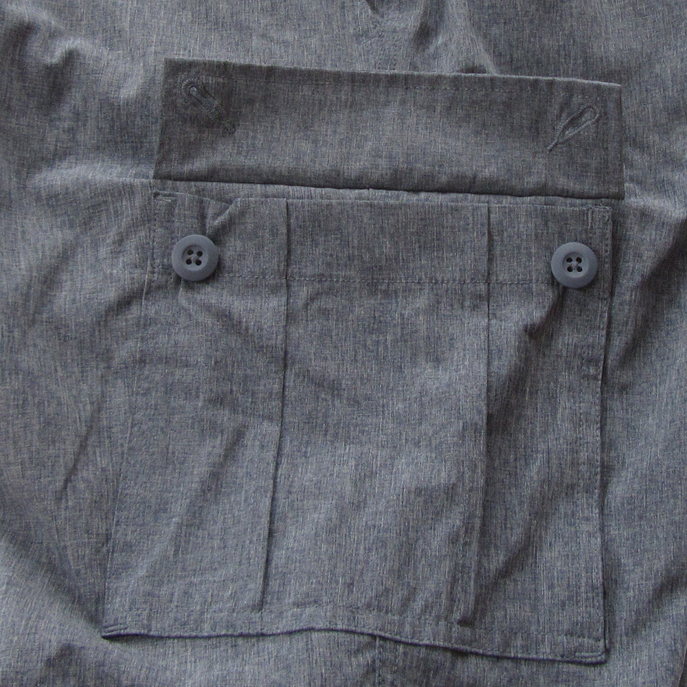 デザインは、どんなトップスにも合わせやすい大人の雰囲気漂うグレー系。カーゴパンツらしい大きめのポケットが左右の太ももに付いており、デザインのアクセントになっています。深めのポケットが前後に2つずつあるので、スマホや財布など、ちょっとした小物を収納するのにも便利です。