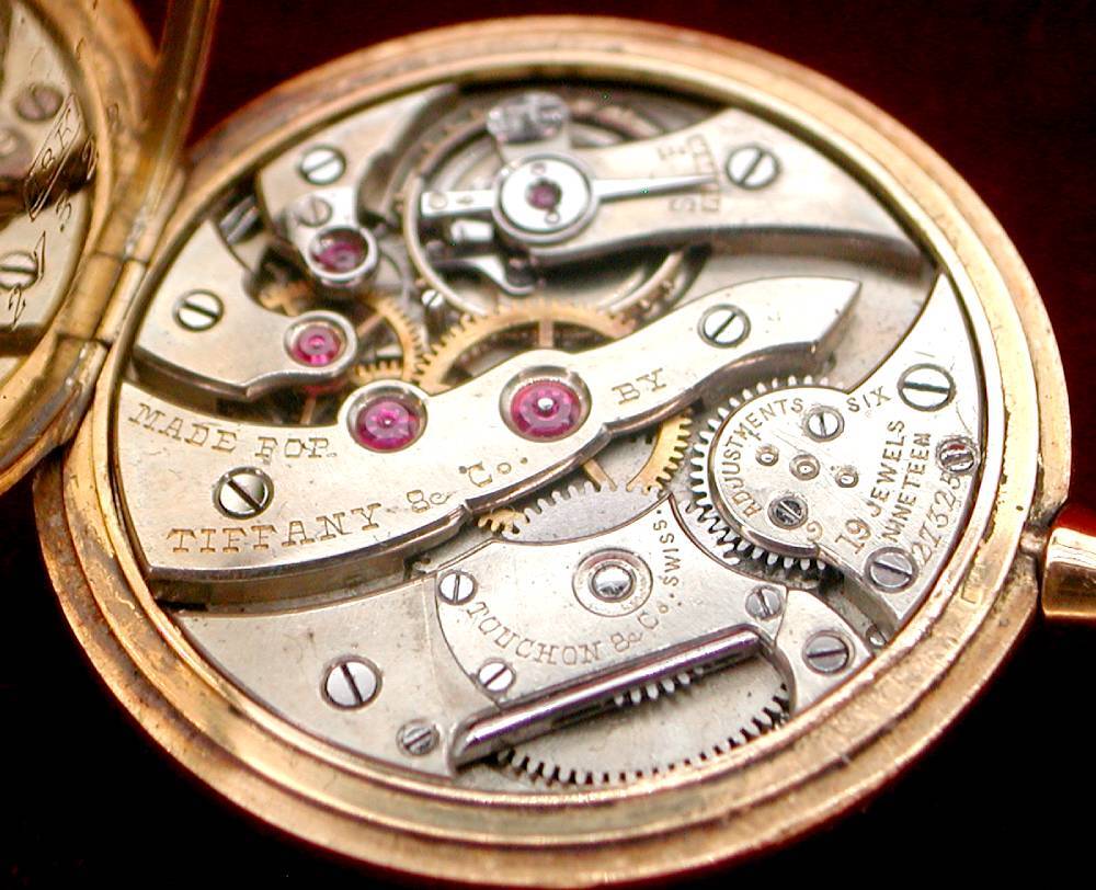 この高級薄型18K金無垢ケースに収まったTiffanyで金属文字盤装着の 最高級TOUCHON19石機械の懐中でTiffanyトリプルネームは修理が必要(此方の時計屋さんが歳で出来なくなりました)ですのでぜひトライして見て下さい。( 古い時計の扱いに慣れている時計屋さんでないと手に負えないです)