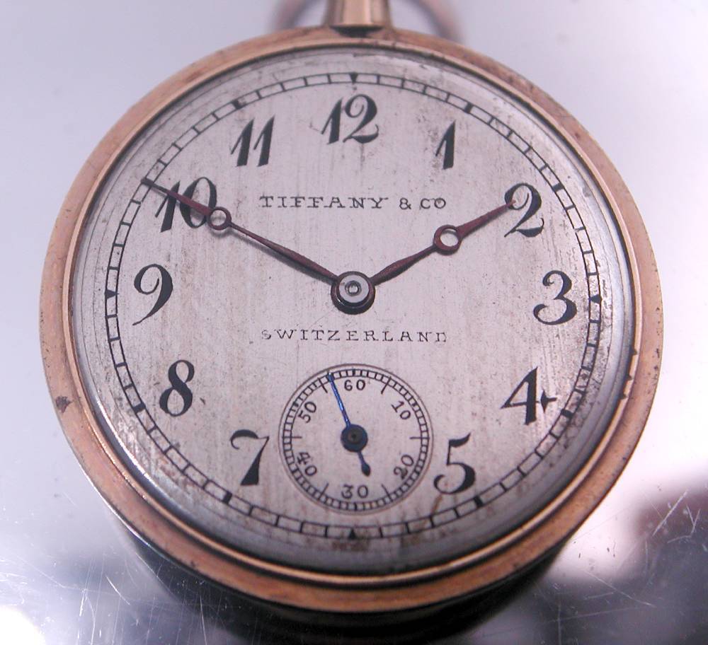 極上・Tiffany高級薄型1 8K金無垢ケース・ 金属文字盤・最高級TOUCHON・19石機械の懐中はTiffanyトリプルネームは修理必要です