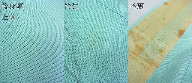 状態は接写画像のように後身頃・上前・衿先に汚れ