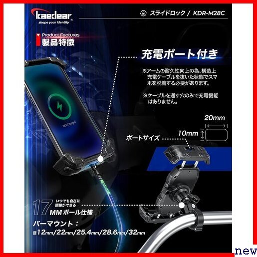 新品 Kaedear スライドロック/KDR-M28C 耐久強度 ロック バー スマホホルダー バイク カエディア 154