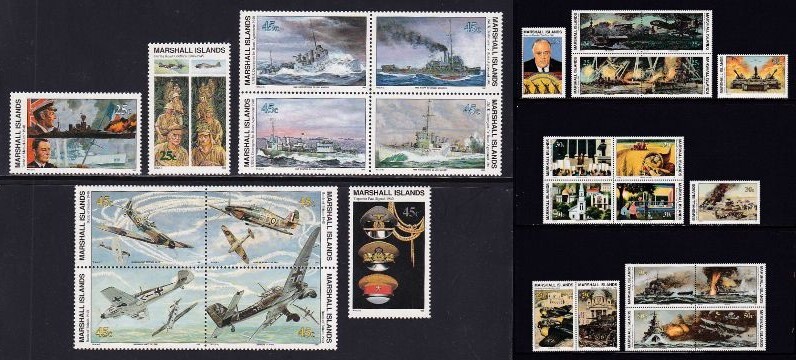 27 マーシャル諸島【未使用】<「1989-95 SC#239-337,#467-524,#562-563 第二次世界大戦史」99種完,56種(56/58,#495,510欠),小型シートx2>