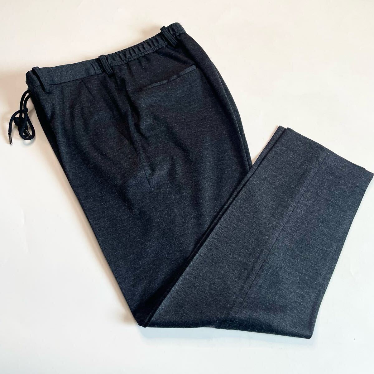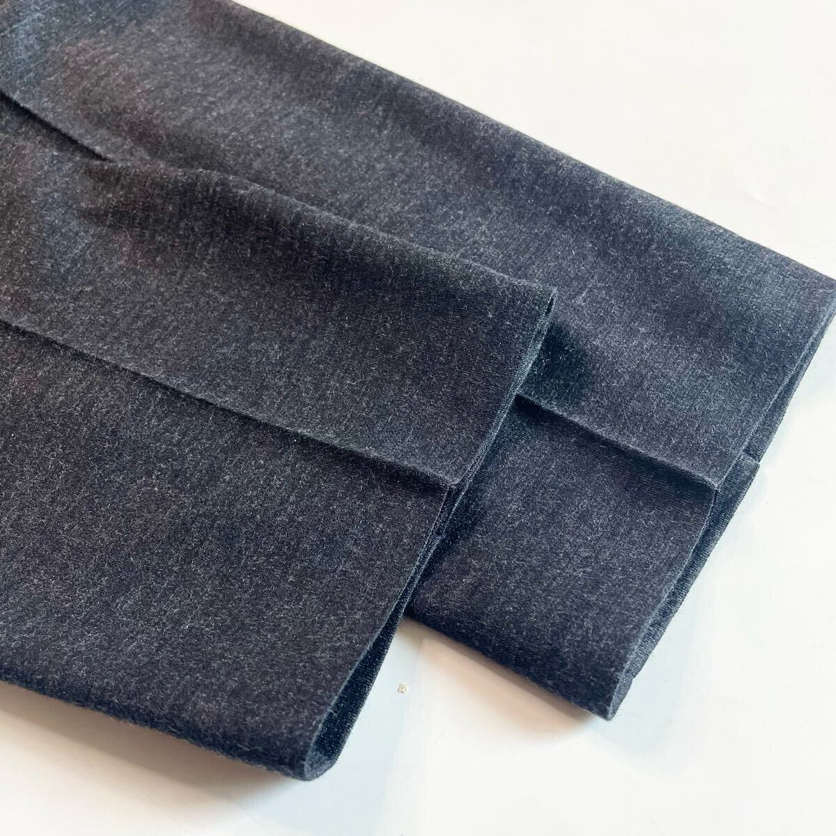 ジャージー製のストレッチ素材(アクリル45%ヴァージンウール45%ポリエステル10%)が、フラノ調の杢チャコールグレーの温かみある色調で快適な着心地を提供。