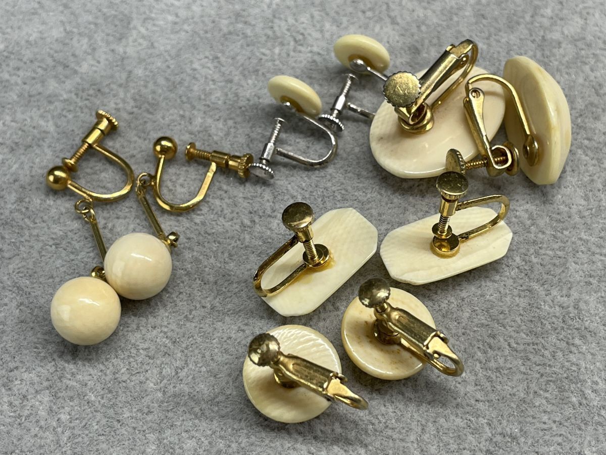 【M769】ヴィンテージ 象牙風 象牙調 アクセサリー まとめ売り 約154g 彫刻 牙彫 アイボリー 天然素材 イヤリング レトロ b