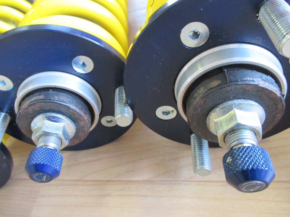 5年程前に新品で購入取付後、公道使用のみで、走行距離は4千キロ程度です。今すぐオーバーホールの必要は無いと思います。全体的に程度は良好ですが、さすがに取付使用時にできた小傷はあります。またバネに若干の塗装?がれと、リヤの減衰ダイヤルに傷があります。定価で20万円以上する車高調キットなので、この機会にいかがでしょうか。