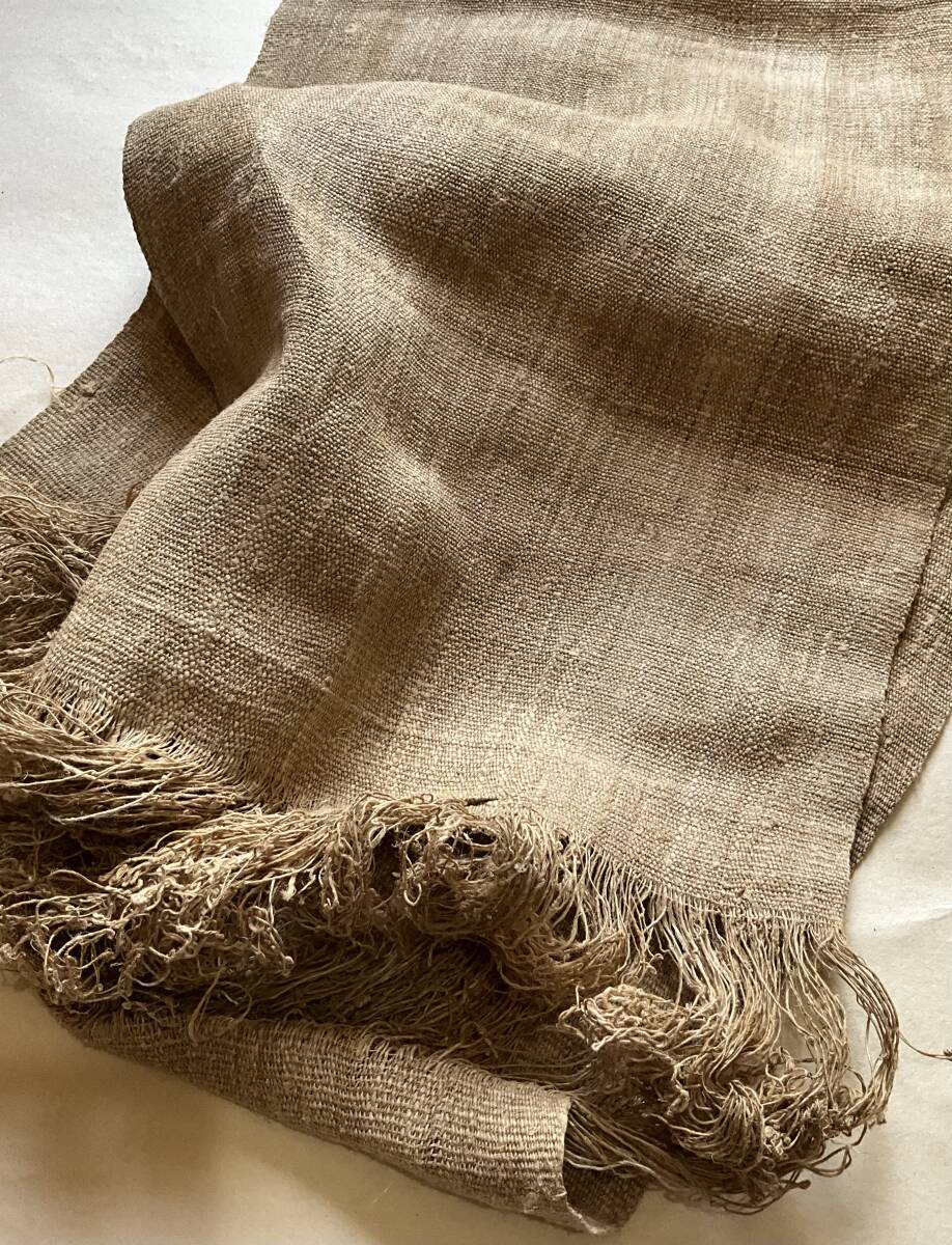 Product name: 麻布 外国裂 ラオス?タイ?ネパール?中国 生成 一枚 いざり機 地機 / 麻布 古布 外国裂 古民藝 自然布