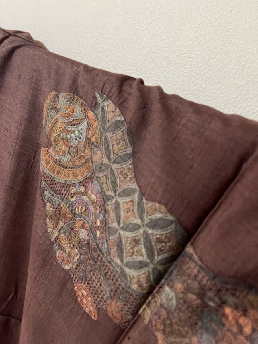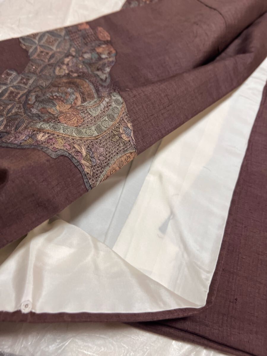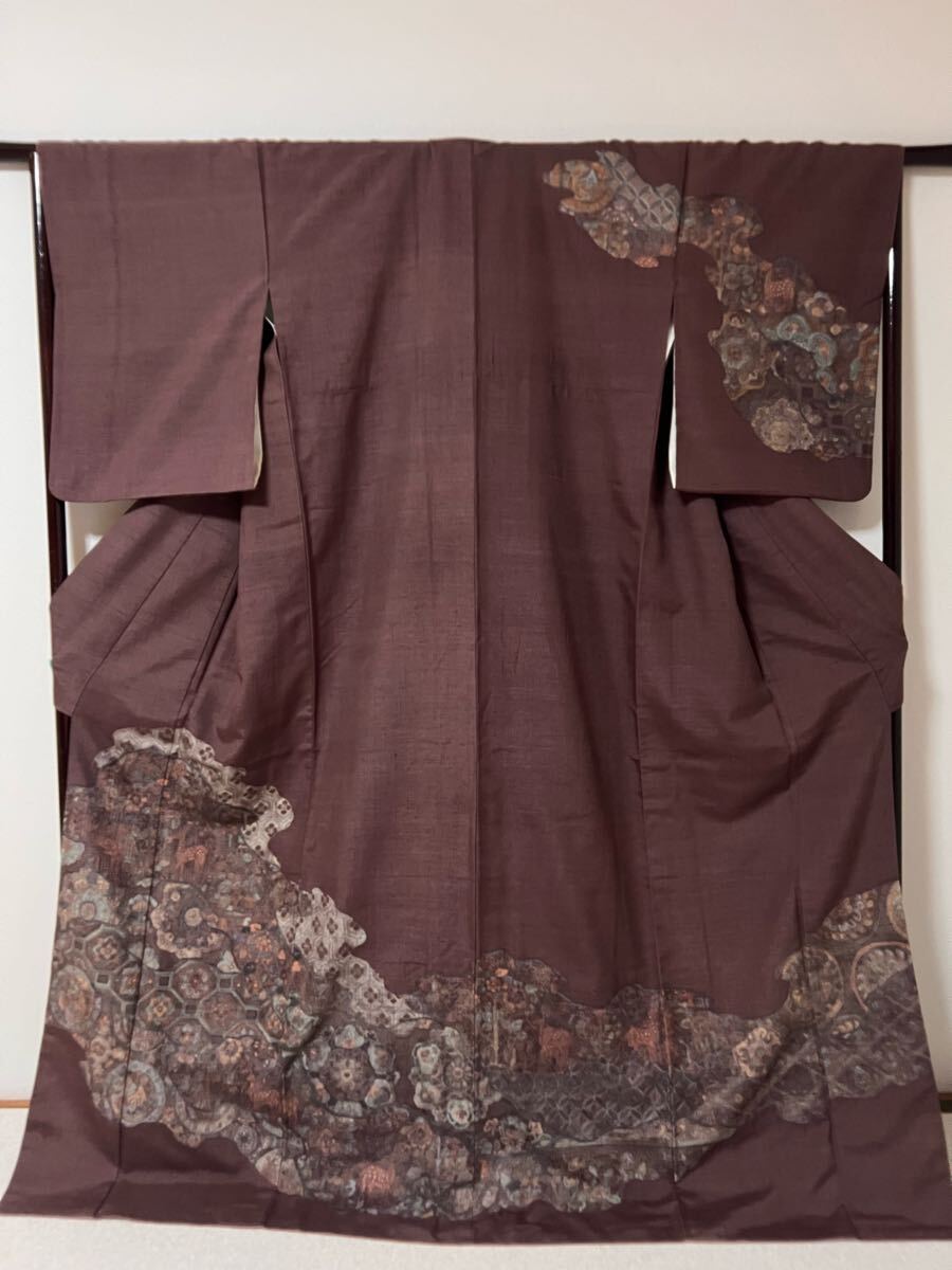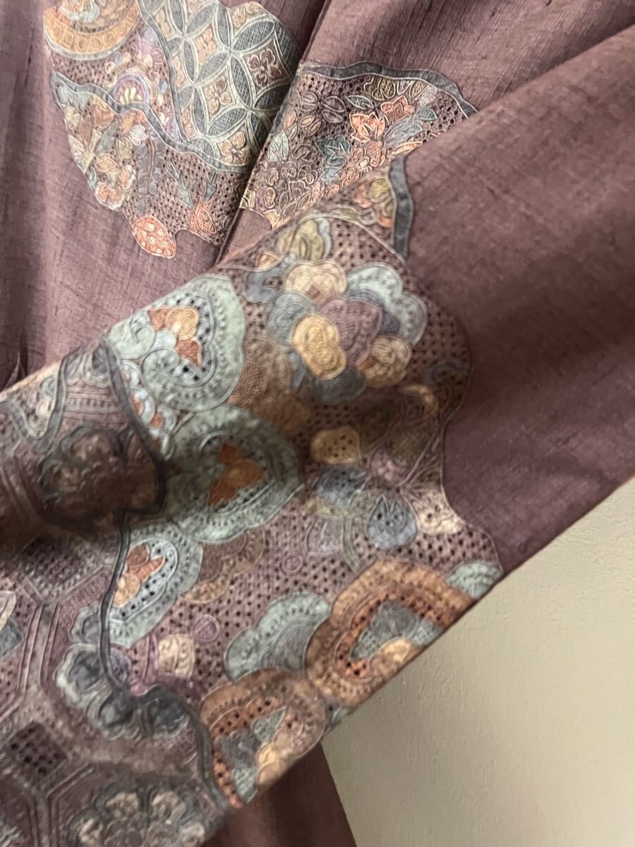 Product name: 名品 着物 紬 総汕頭刺繍 燻紫系 正絹 訪問着 着丈168.5cm きもの