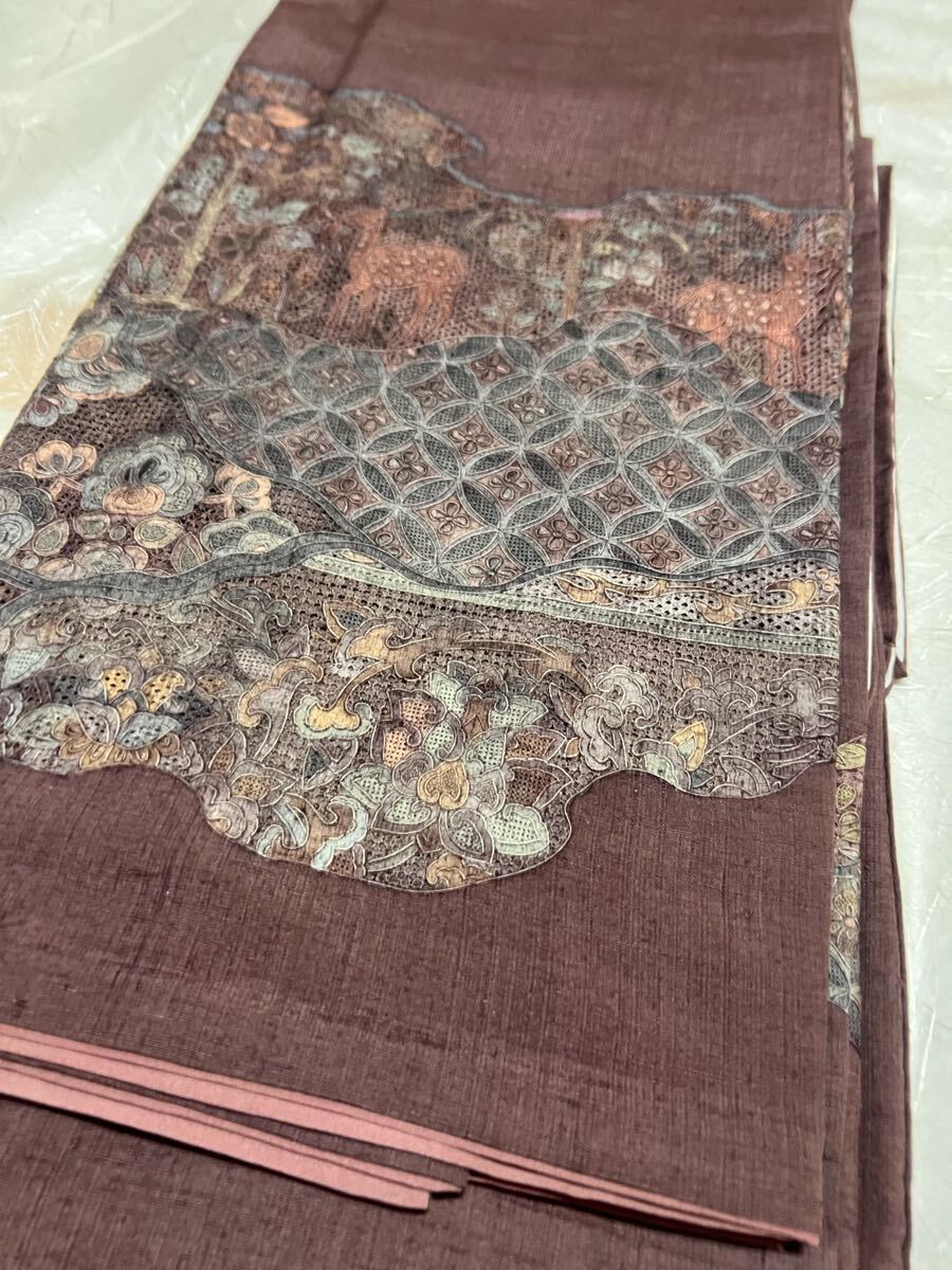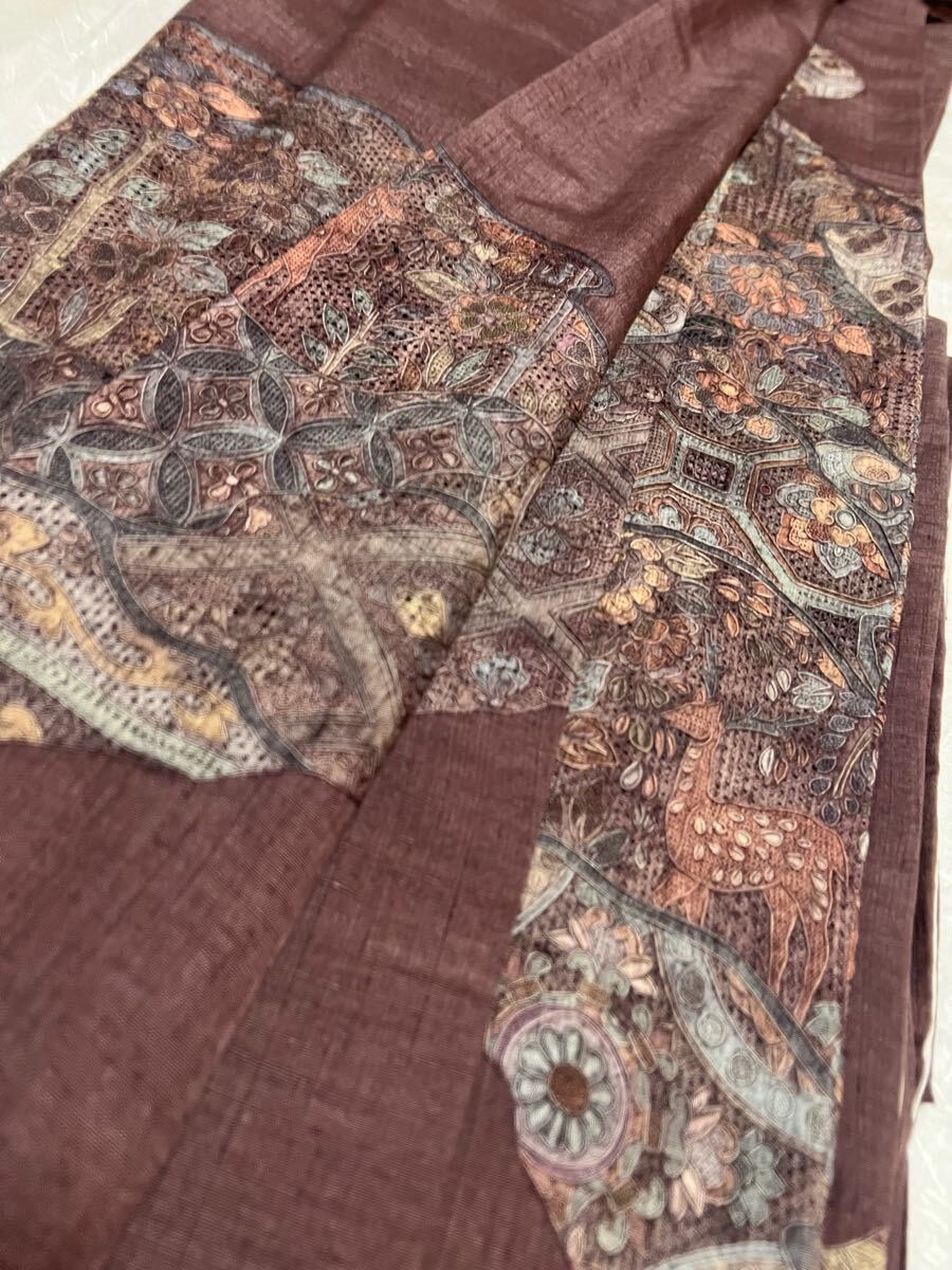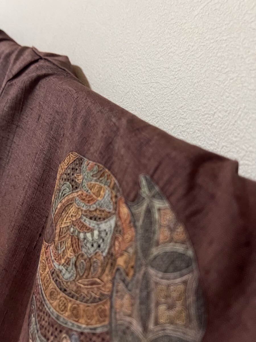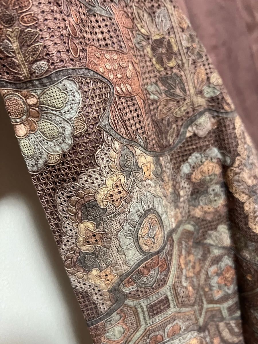 Product name: 名品 着物 紬 総汕頭刺繍 燻紫系 正絹 訪問着 着丈168.5cm きもの