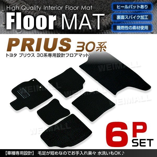 トヨタ ZVW30 前期 プリウス用 フロアマット 6点セット ヒールパット付 カーマット 裏面スパイク加工 難燃性の素材使用 黒 ブラック