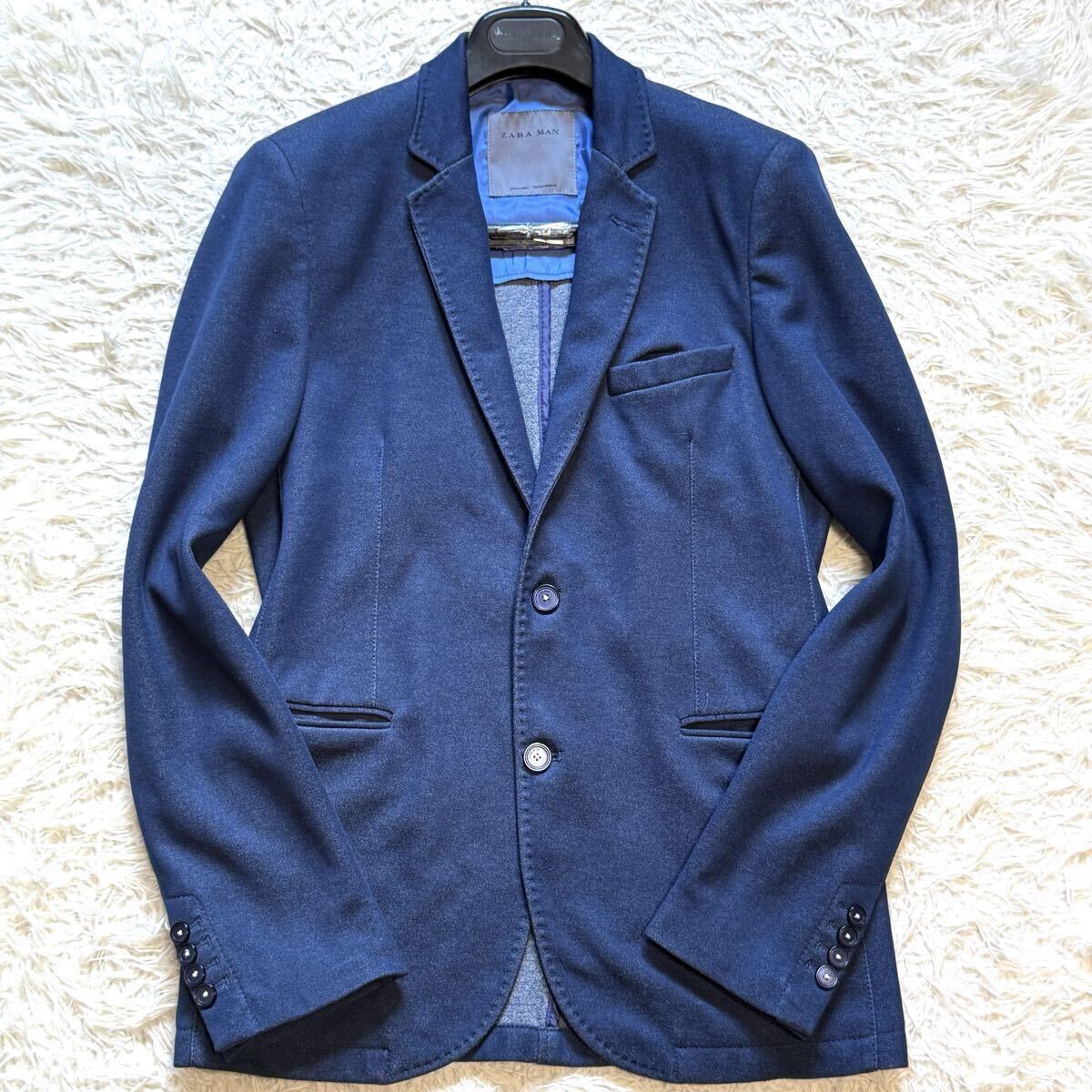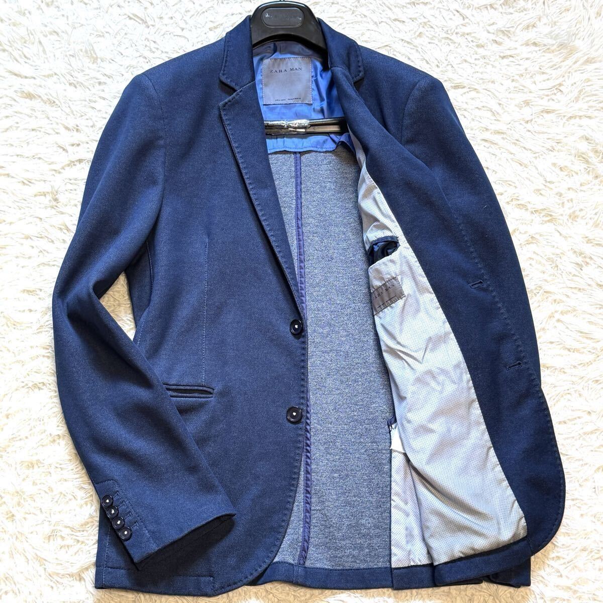 大きいサイズ! ZARA MAN ザラマン テーラードジャケット 50 XL インディゴ ブルー デニム調 ストレッチ アンコンジャケット メンズ 紳士服