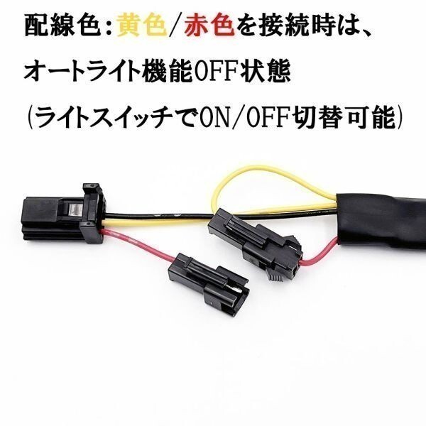 配線色:黄色/赤色を接続時は、オートライト機能OFF状態(ライトスイッチでON/OFF切替可能)