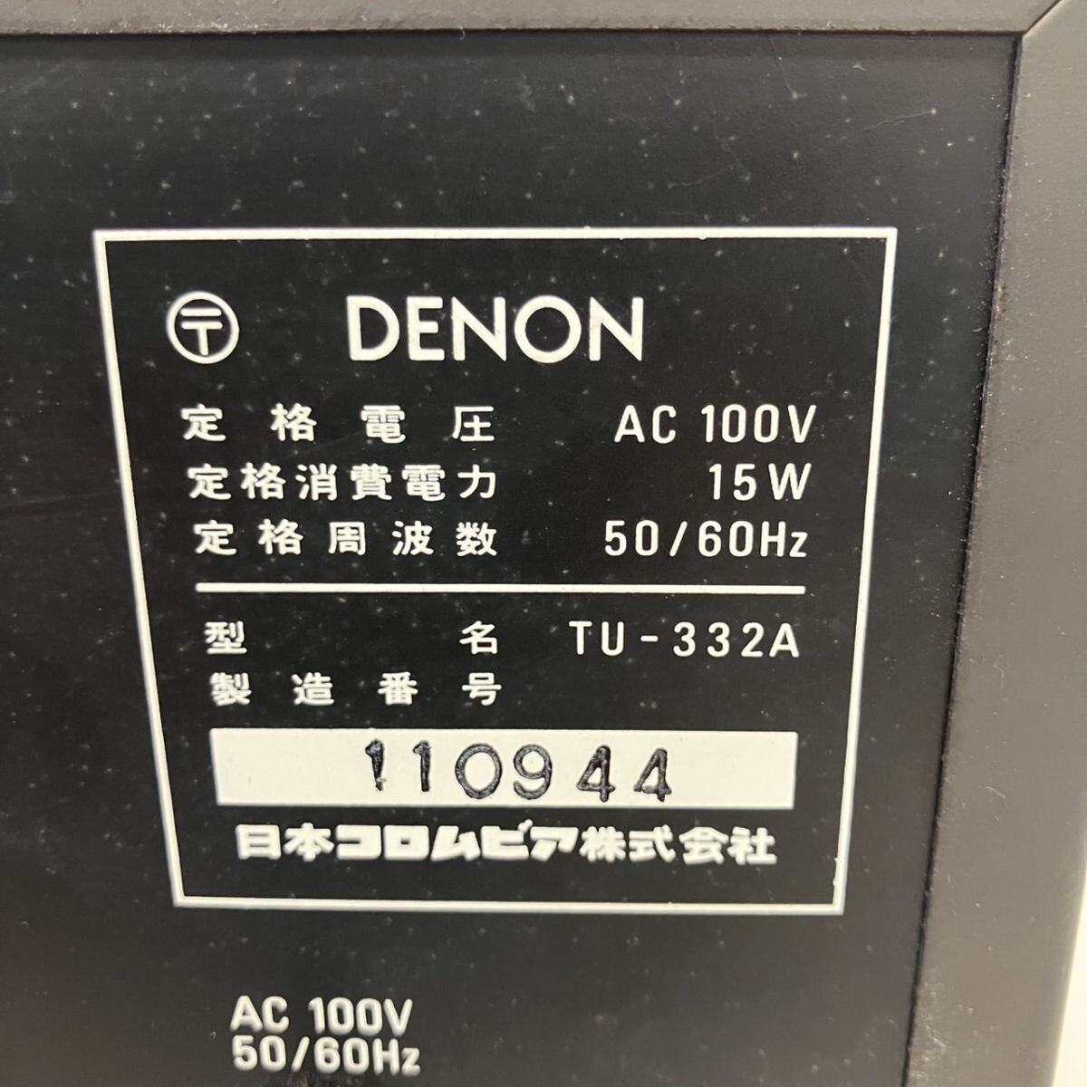 Product name: J017-HR1-183 DENON デノン TU-332A FM AM チューナー 通電確認済 ワンメーター 日本コロムビア HA