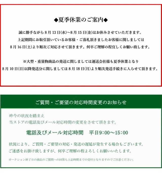 【当ストアオークションルールを入札前に必ずご確認ください。】