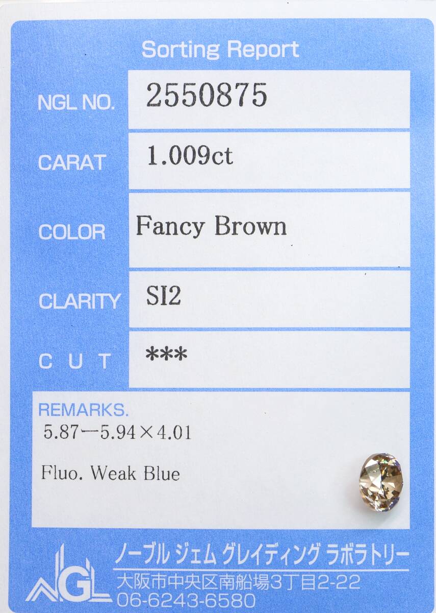 Product name: 【100円~】1.009ct!天然ダイヤ FANCY BROWN(ナチュラルカラー)SI2