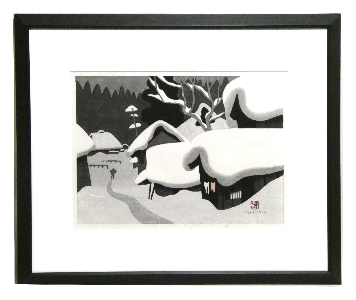 Product name: 祥【真作】斎藤清「WINTER IN AIZU(30)」1978年 木版画10号大 サイン有 福島出身 現代木版画巨匠 会津の冬 文化功労者【ギャラリー祥】