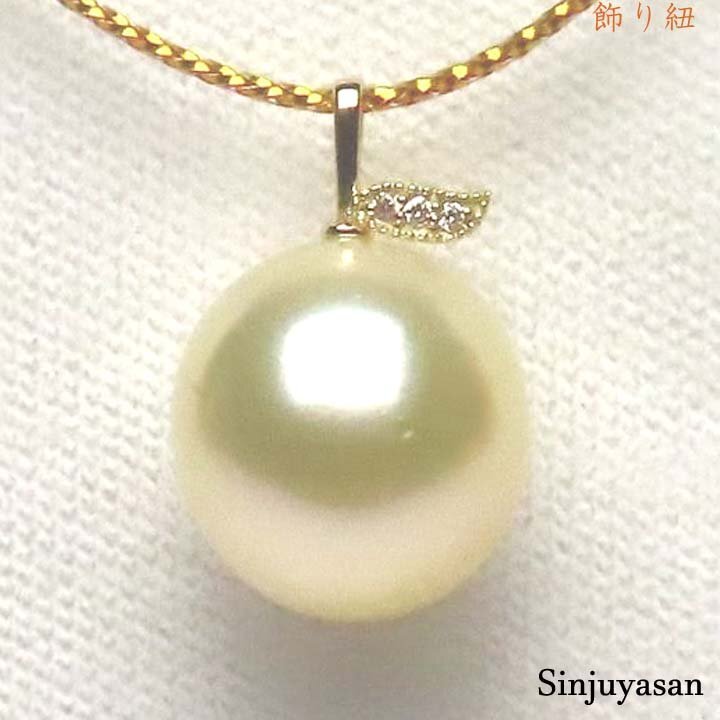 Product name: 真珠屋さん ナチュラル【天然シャンパンゴールド】13.1mm 白蝶真珠 ダイヤモンドD0.01ct K18ペンダントトップ パール 18金 新品