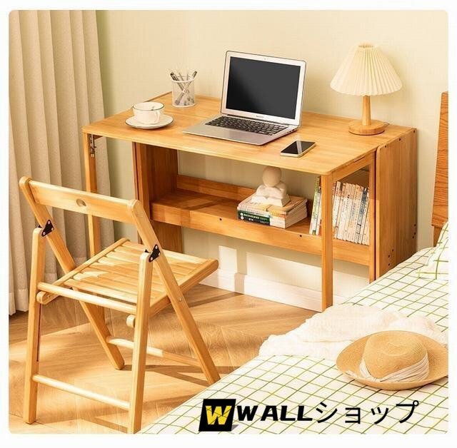 Product name: 折りたたみデスク テレワークデスク 省スペース 多機能テーブル 机 収納ラック付きデスク 竹製 ナチュラル