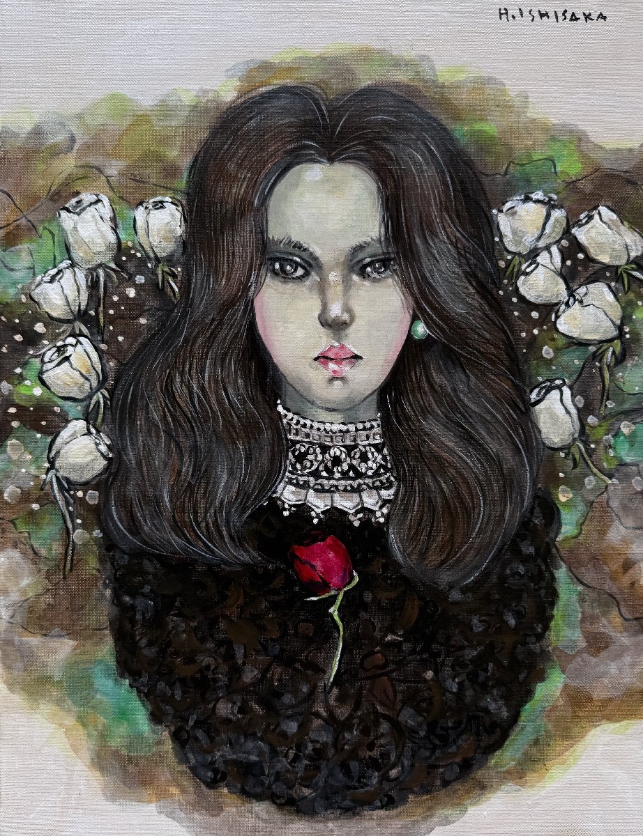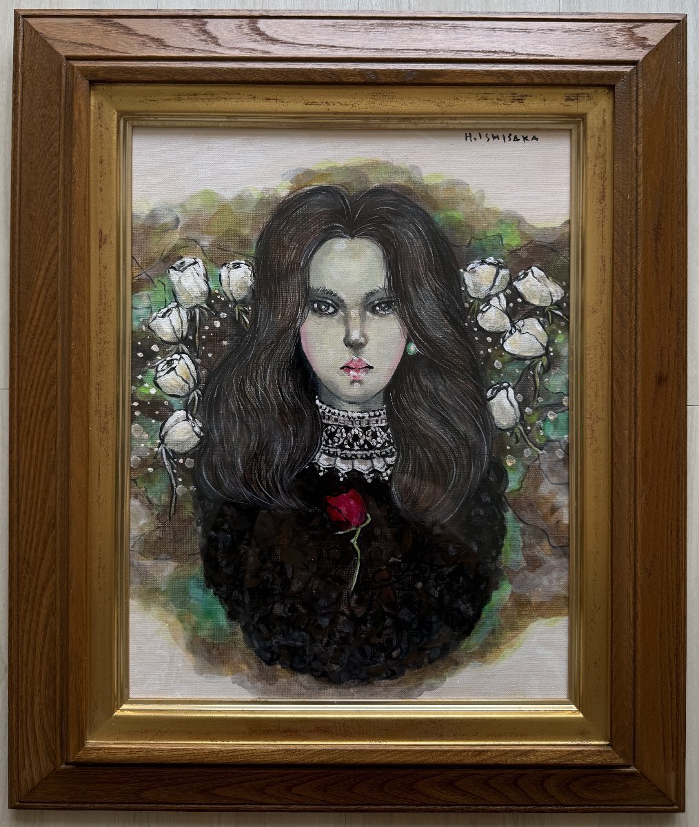 Product name: 【宇美】真作 石阪春生 小さいな薔薇 女のいる風景 油彩6号 直筆サイン◎兵庫出身 師・小磯良平 神戸市文化賞 新制作協会会員 送料無料