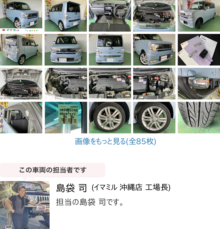 Product name: 【諸費用コミ】:沖縄県発 現状販売 業販 平成26年 ダイハツ ムーヴコンテ カスタム RS 水色 106,516km 車検R7年11/27