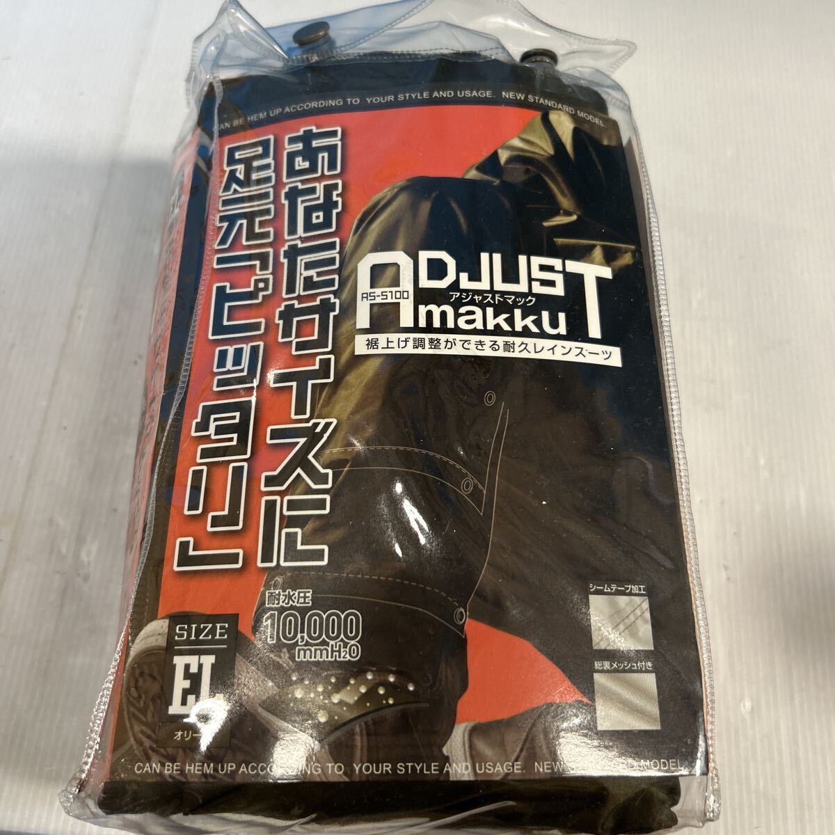 アジャストマック レインスーツ 裾上げ調整 耐久 未使用品 大きめ EL オリーブ カッパ