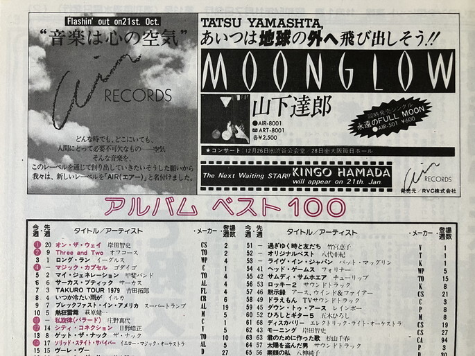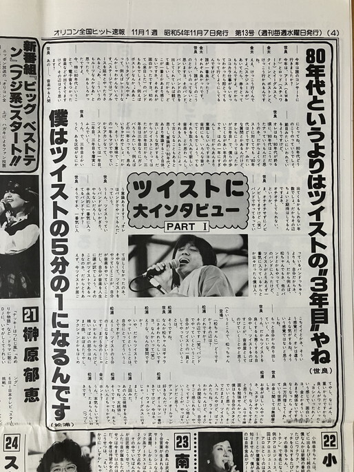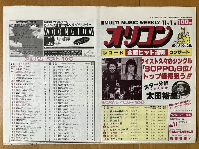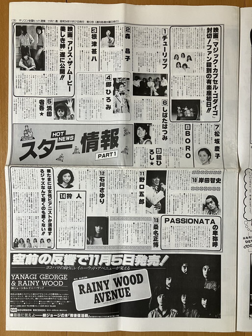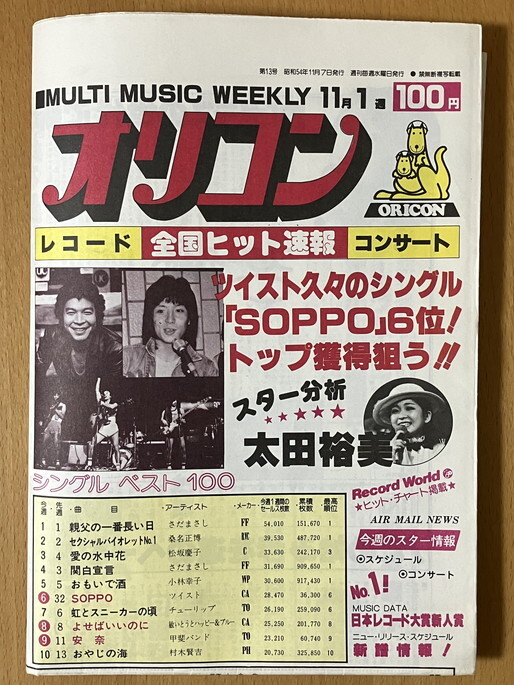 ★オリコン 1979/11/7 山下達郎 太田裕美 ゴダイゴ 柳ジョージ 大橋純子 ツイスト 豊島たづみ さだまさし 倉田まり子 TOTO 桃井かおり 54