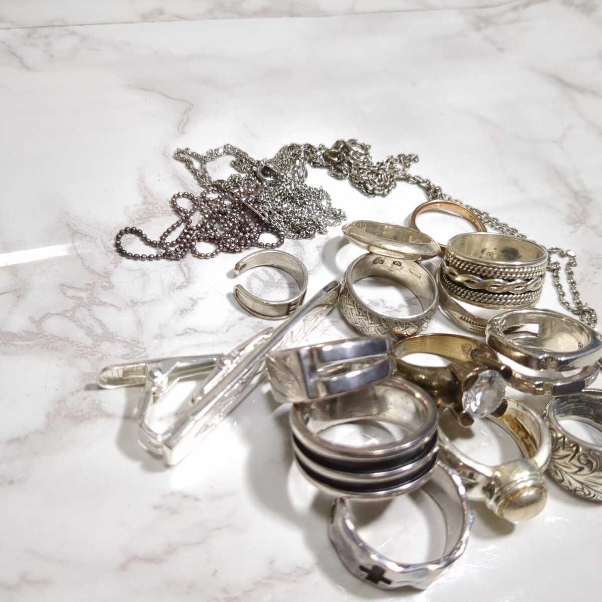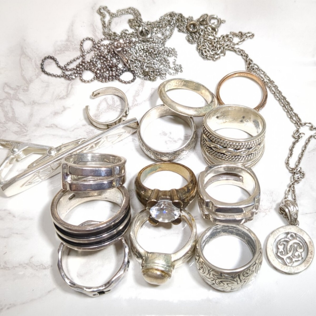 101g シルバー SILVER 925刻印等 銀製品 デザイン リング ネックレス チェーン 指輪 ヴィンテージ まとめ 大量 1円