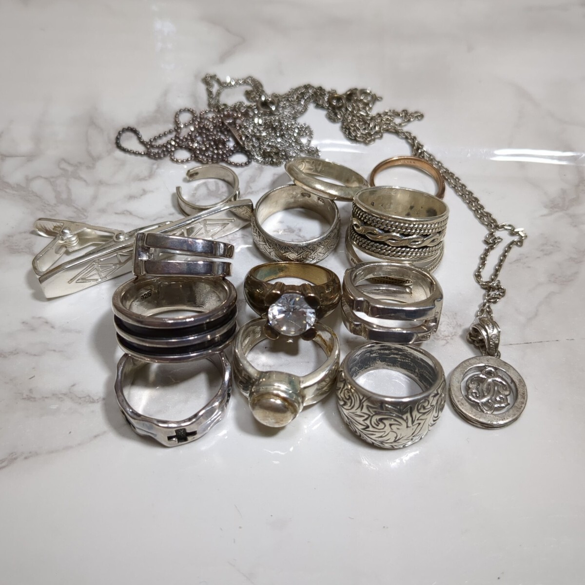 Product name: 101g シルバー SILVER 925刻印等 銀製品 デザイン リング ネックレス チェーン 指輪 ヴィンテージ まとめ 大量 1円