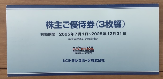 Product name: ★セントラルスポーツ 株主優待券 3枚セット 期限25年12月末まで★