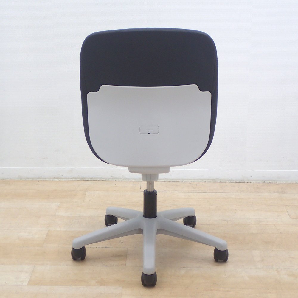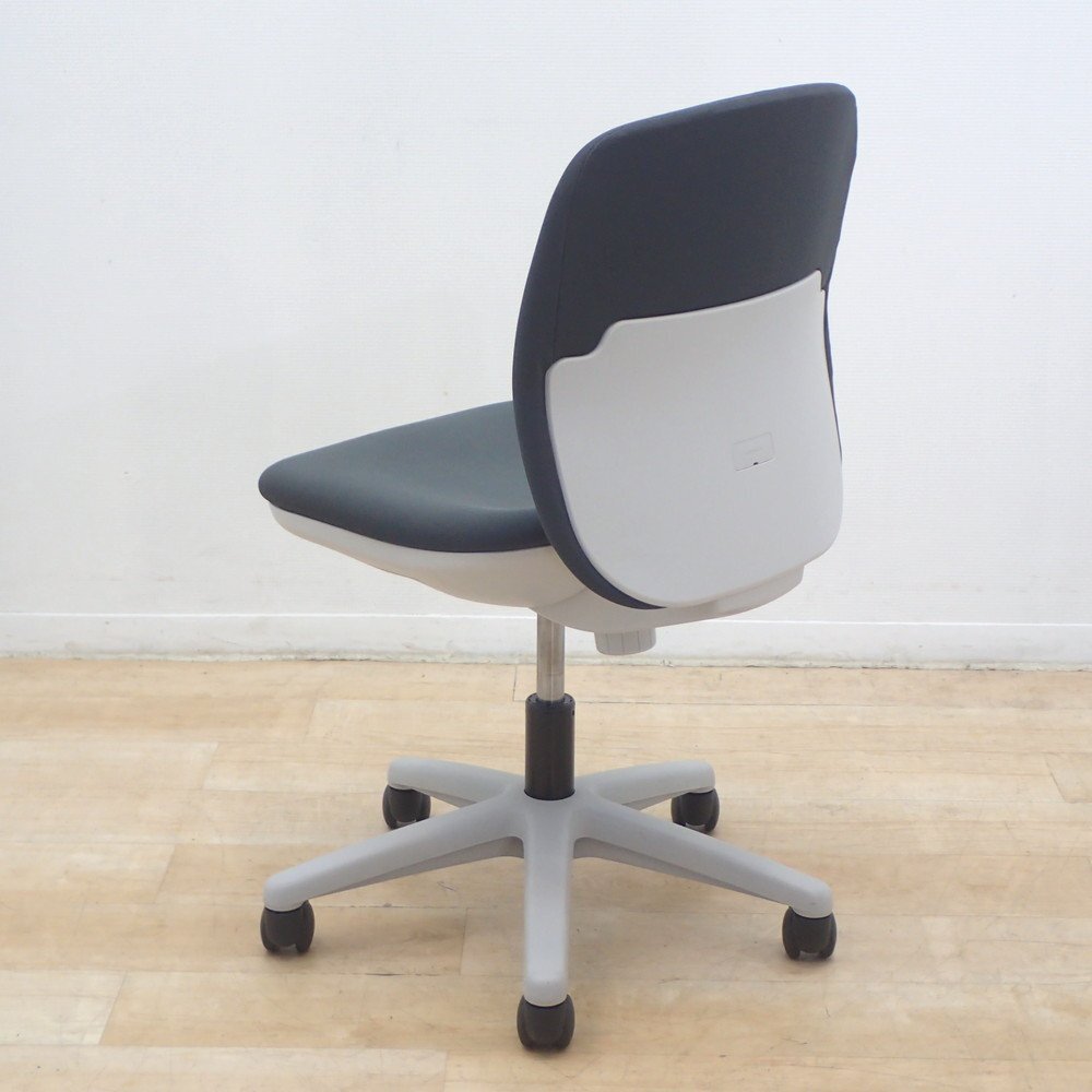 肘掛けがないのでデスク下にも収まりやすく、背もたれも低いローバックなので、コンパクトに使える一脚です。