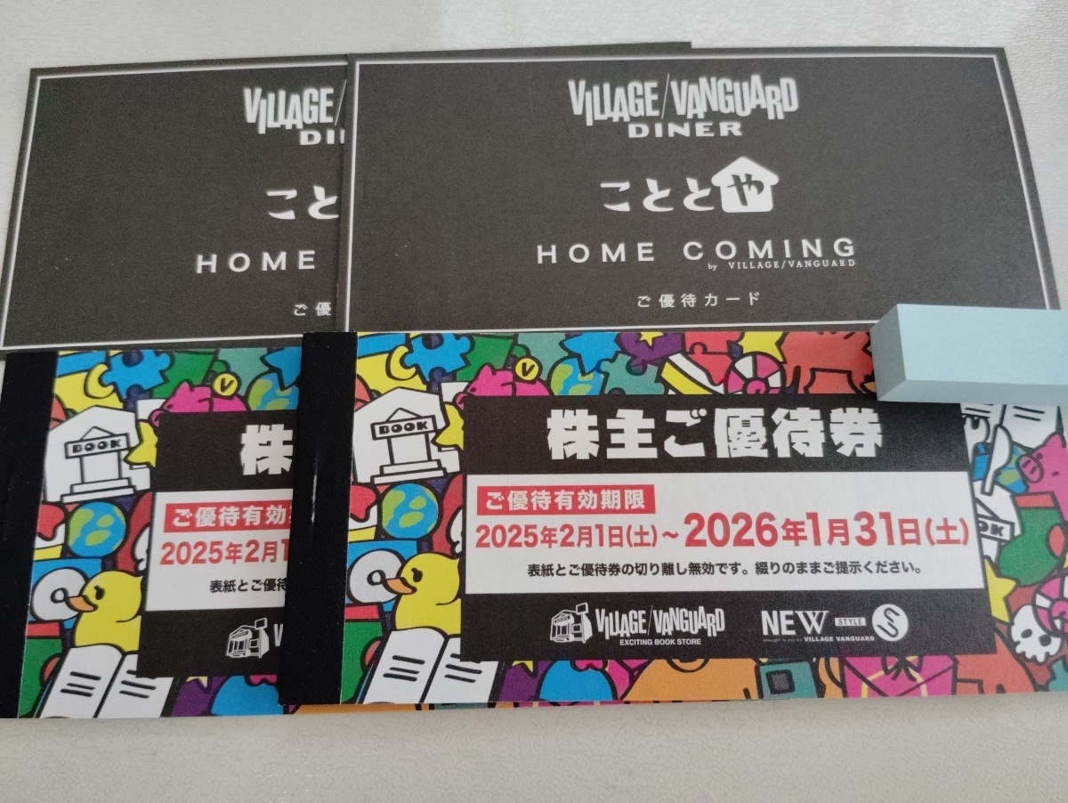 ヴィレッジヴァンガードの株主優待券24,000円分です。