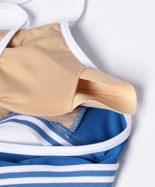 ブラトップ、ビキニショーツ、カバーアップTシャツ、ジャージショートパンツの4点セット水着。フィラのスポーツらしさを存分に楽しめるロゴTシャツに、柔らかい素材のジャージパンツも、全て水に入っても大丈夫だから思いっきりアクティブに楽しめます。インナーブラトップは首の後ろで結ぶホルタータイプで大人っぽく。