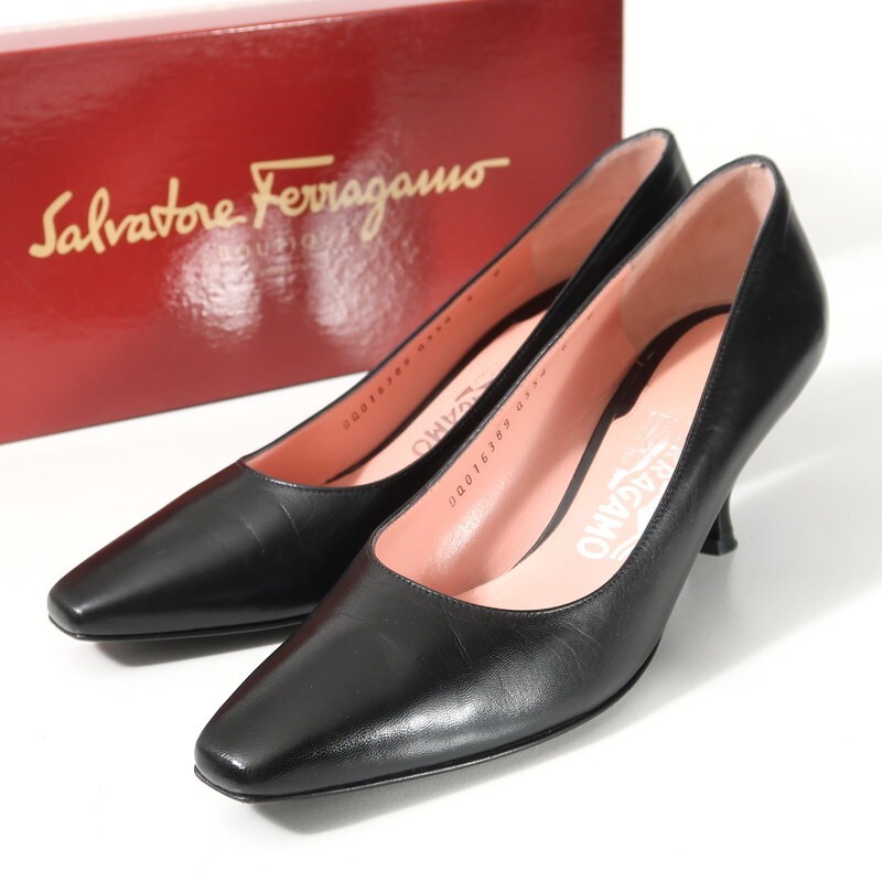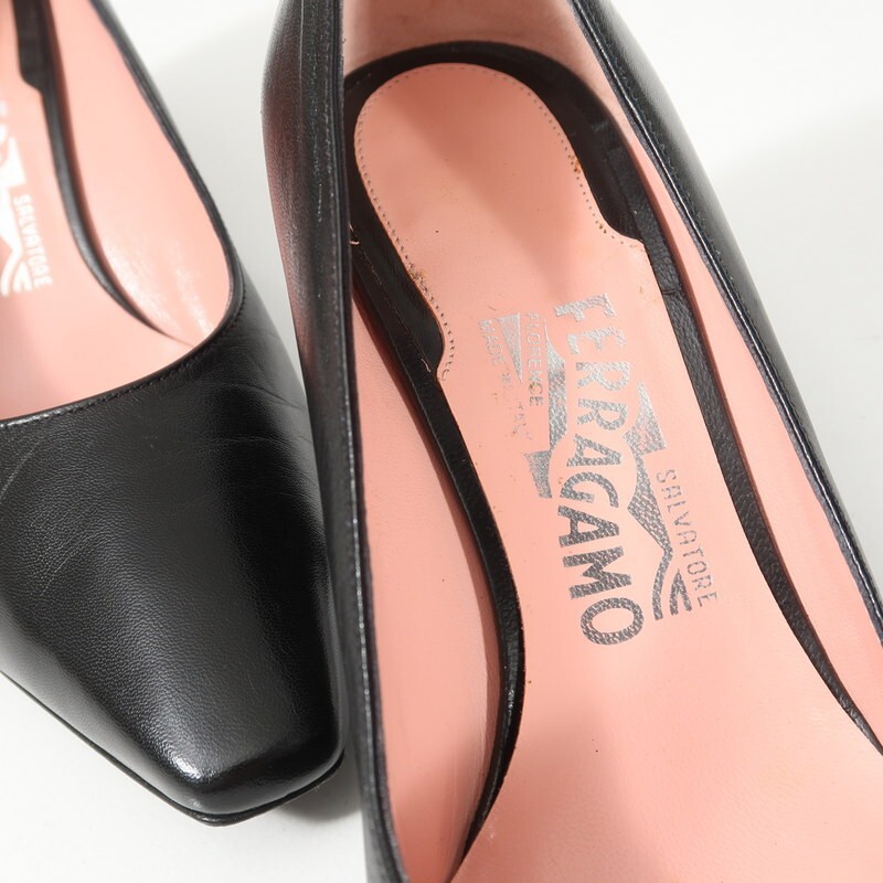 Product name: GS0099*イタリア製 サルヴァトーレフェラガモ 6D(23cm相当) スクエアトゥ レザーパンプス 靴 ブラック Salvatore Ferragamo