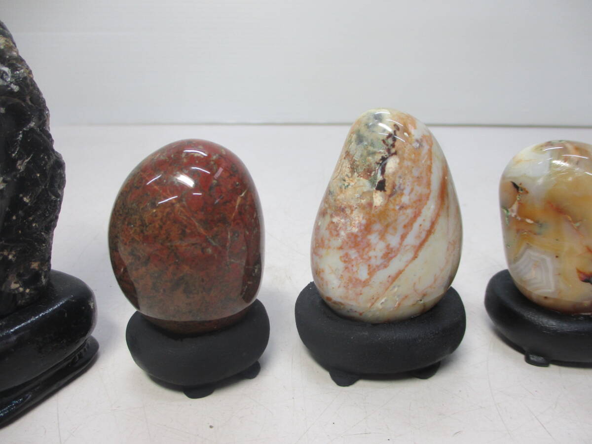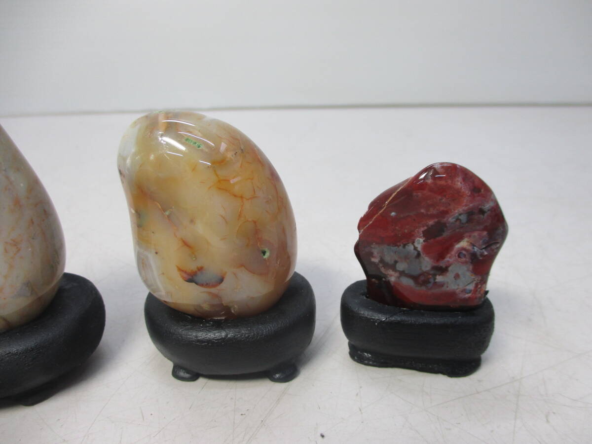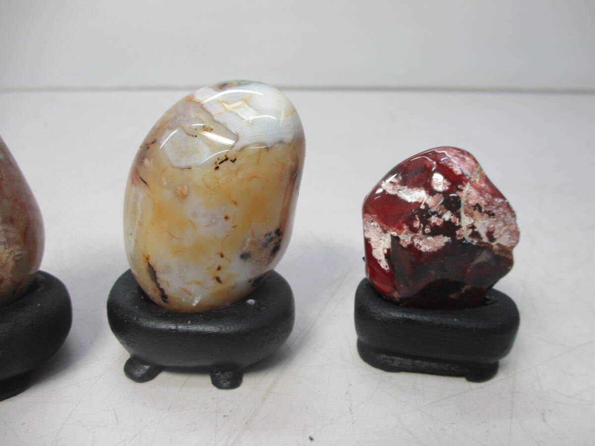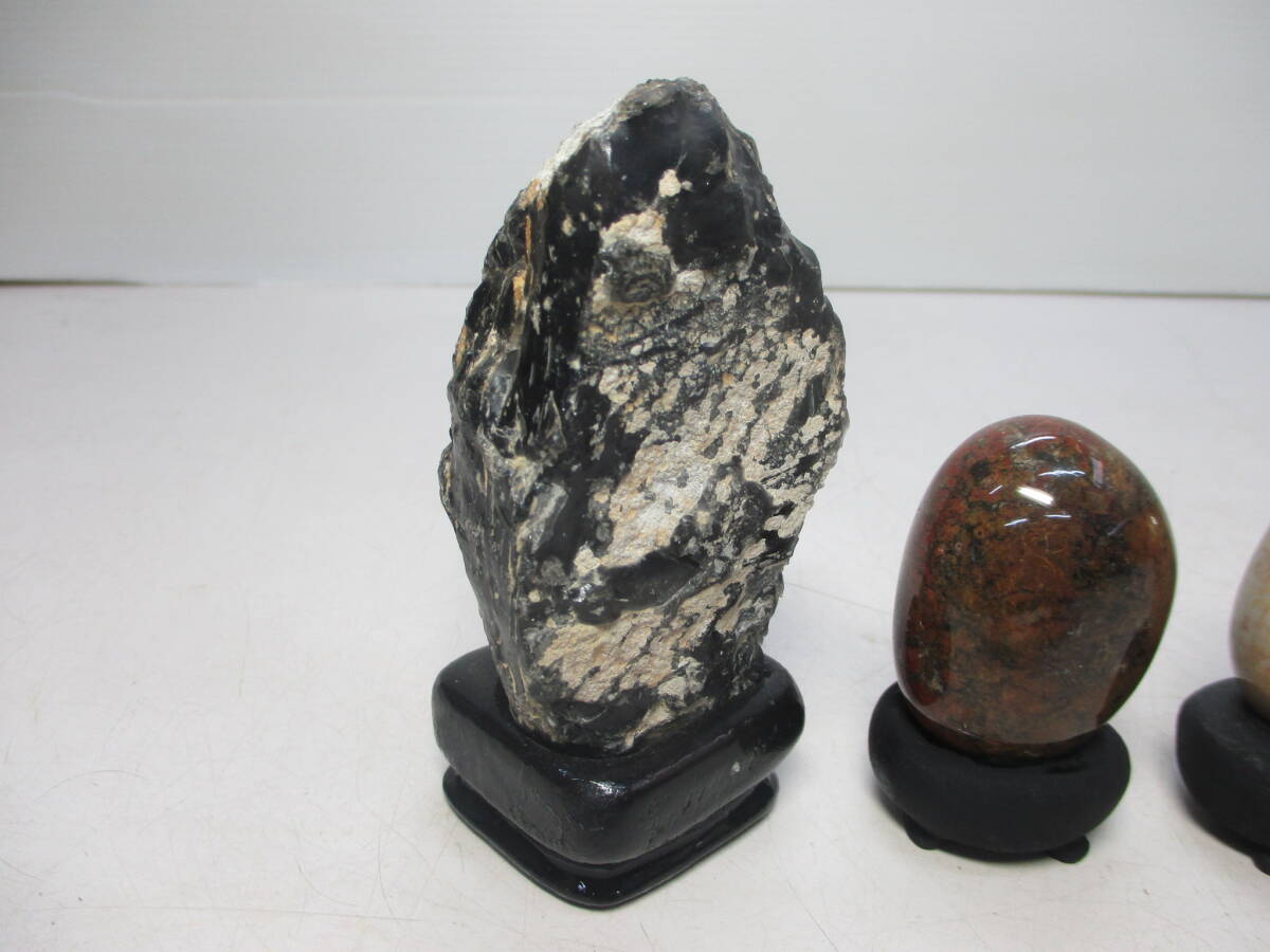 津軽 錦石 メノウ/黒曜石 青森県西海岸産 5点セット 台座付き
