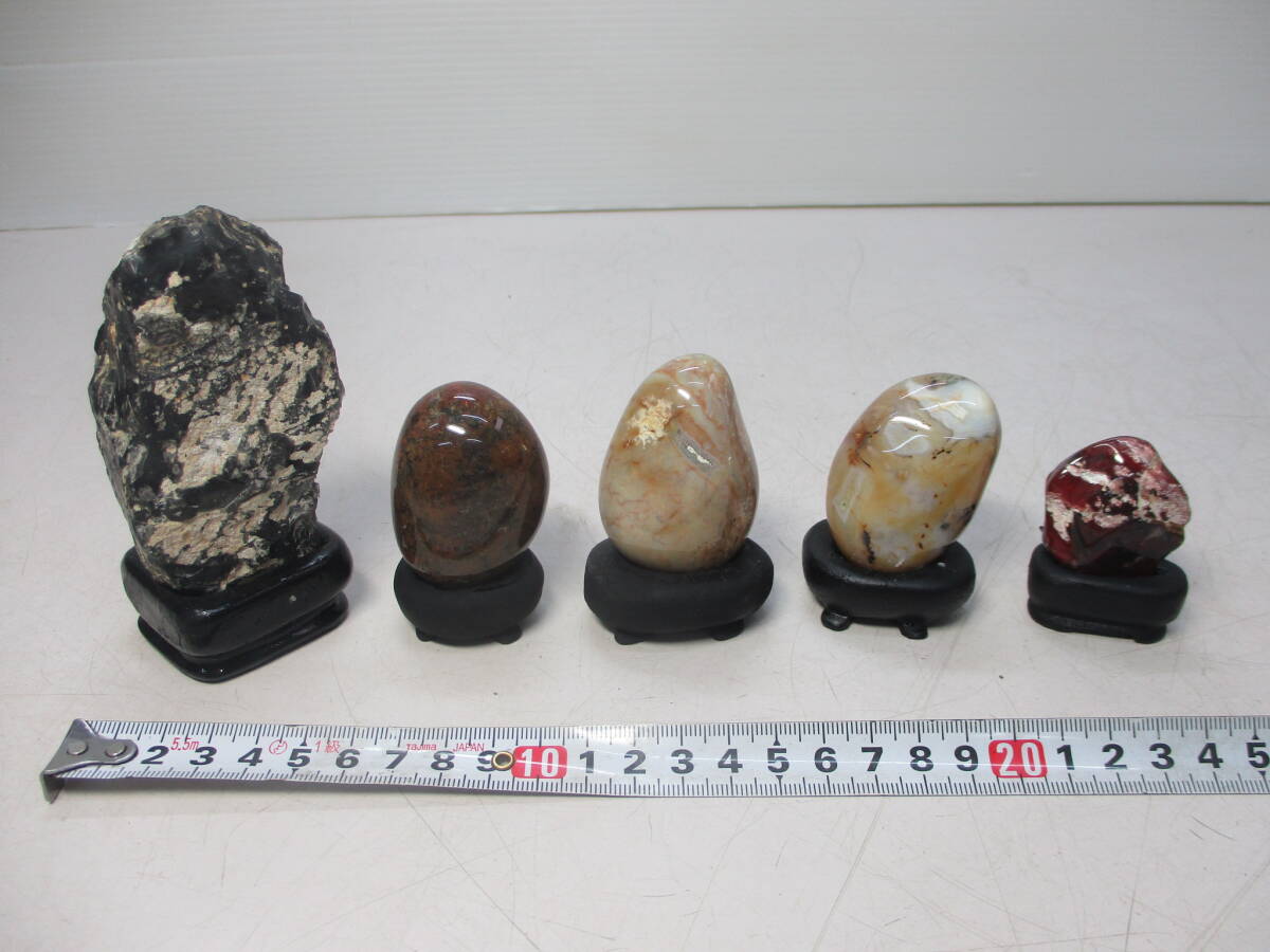 Product name: 津軽 錦石 メノウ/黒曜石 青森県西海岸産 5点セット 計550g 台座付き にしき石 水石 鑑賞石 盆石 自然石 N15