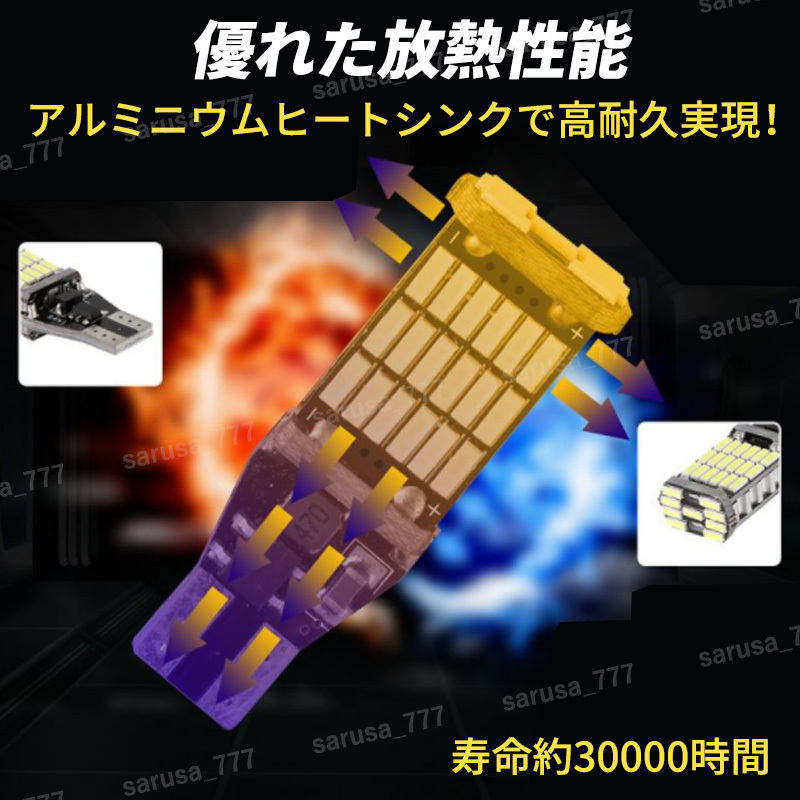 Product name: T10 T16 T15 LED バックランプ ポジション球 ウェッジ球 高輝度 汎用 バルブ 12V キャンセラー内臓 バックライト 無極性 ホワイト