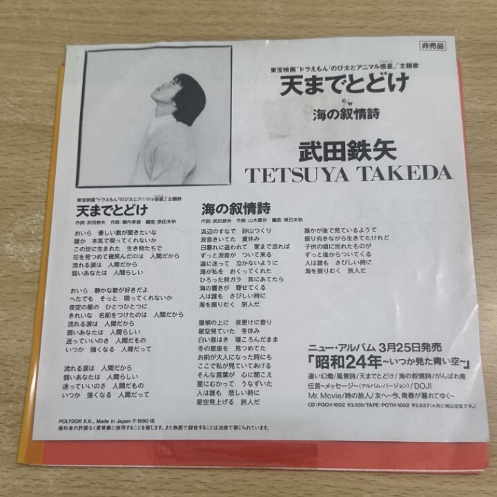 ●01)【同梱不可】【見本盤】天までとどけ/武田鉄矢/ドラえもん/EPレコード/7インチ/国内盤/DDI-5025/A