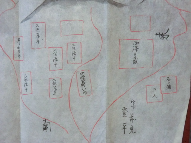 Product name: 幕府領坂木村古地図●明治15年(1882) 字前見登平の開墾人と場所 埴科郡坂木村 現在の長野県坂城町 250831 古文書