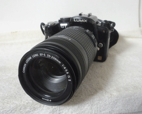 稼働品 パナソニック LUMIX DMC‐G1 ミラーレス一眼カメラ キャノン F4‐5.6 IS Ⅱ望遠ズームレンズ付き パナソニック用 訳あり