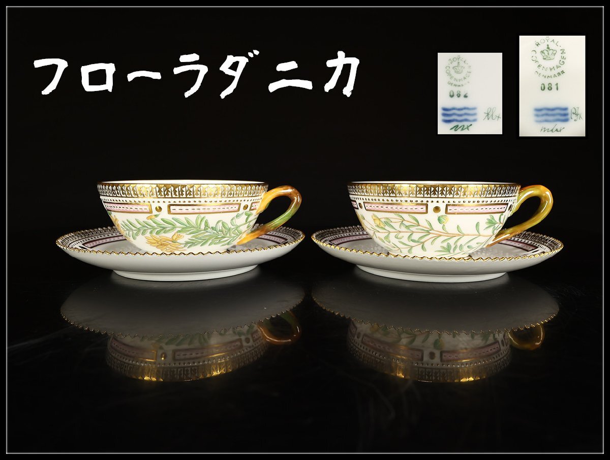 【吉】CM661 ROYAL COPENHARGEN ロイヤルコペンハーゲン【フローラダニカ】カップ&ソーサー 2組4点セット カップ径10.8㎝ 本物保証 極美品