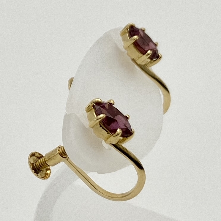 【天然ガーネット】 K18 18金 ネジ式イヤリング 1.2g 鑑別書付き