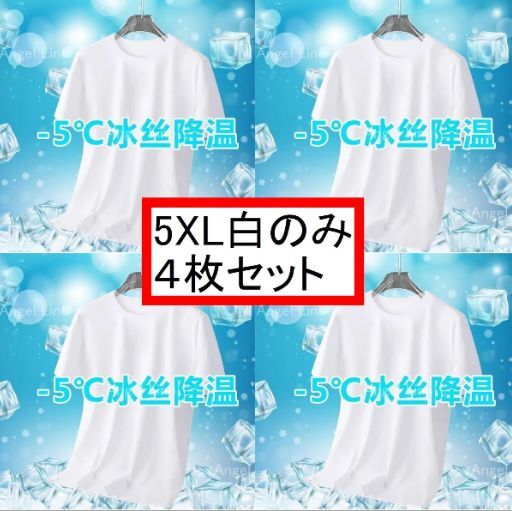 Product name: 6250050Wアイスシルク冷感マイナス5度通気Tシャツ白4枚セットサイズ5XLサラサラ感覚フィット空調服にお勧め(同梱不可)