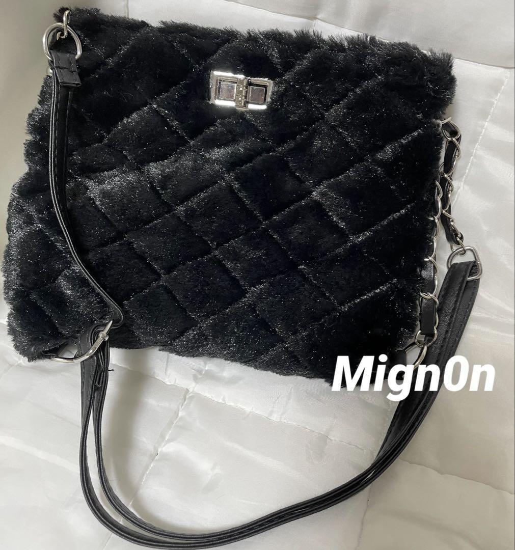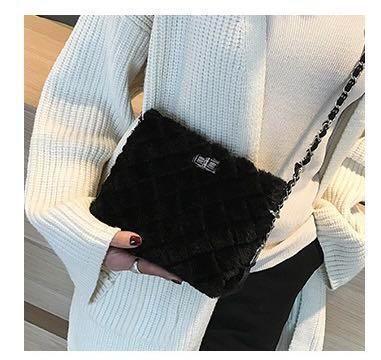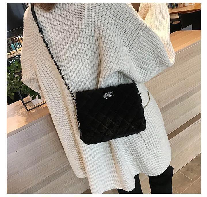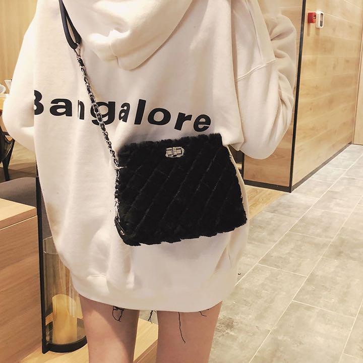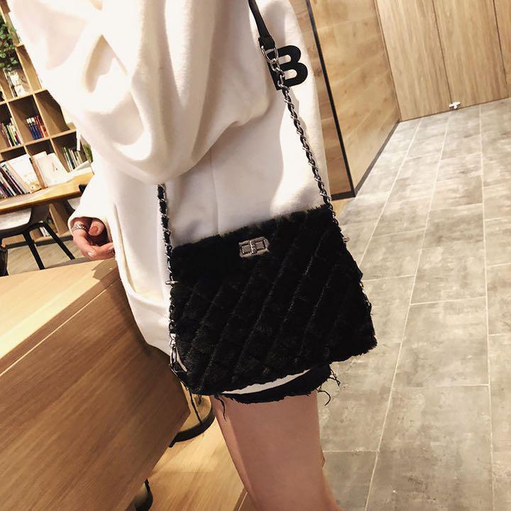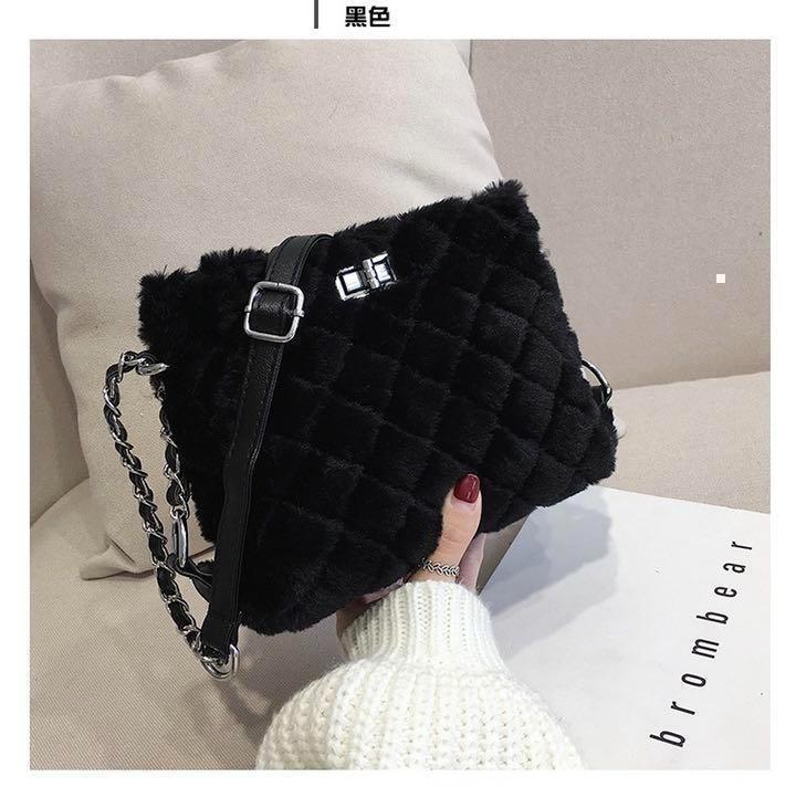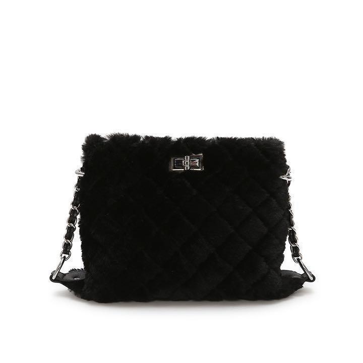 Product name: 数量限定 ファーバッグブラックショルダー チェーンベルト ファー もこもこ バッグ ショルダーバッグ かばん 368