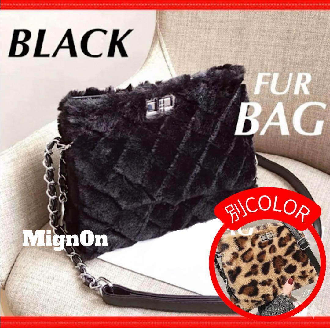 数量限定 ファーバッグブラックショルダー チェーンベルト ファー もこもこ バッグ ショルダーバッグ かばん 368