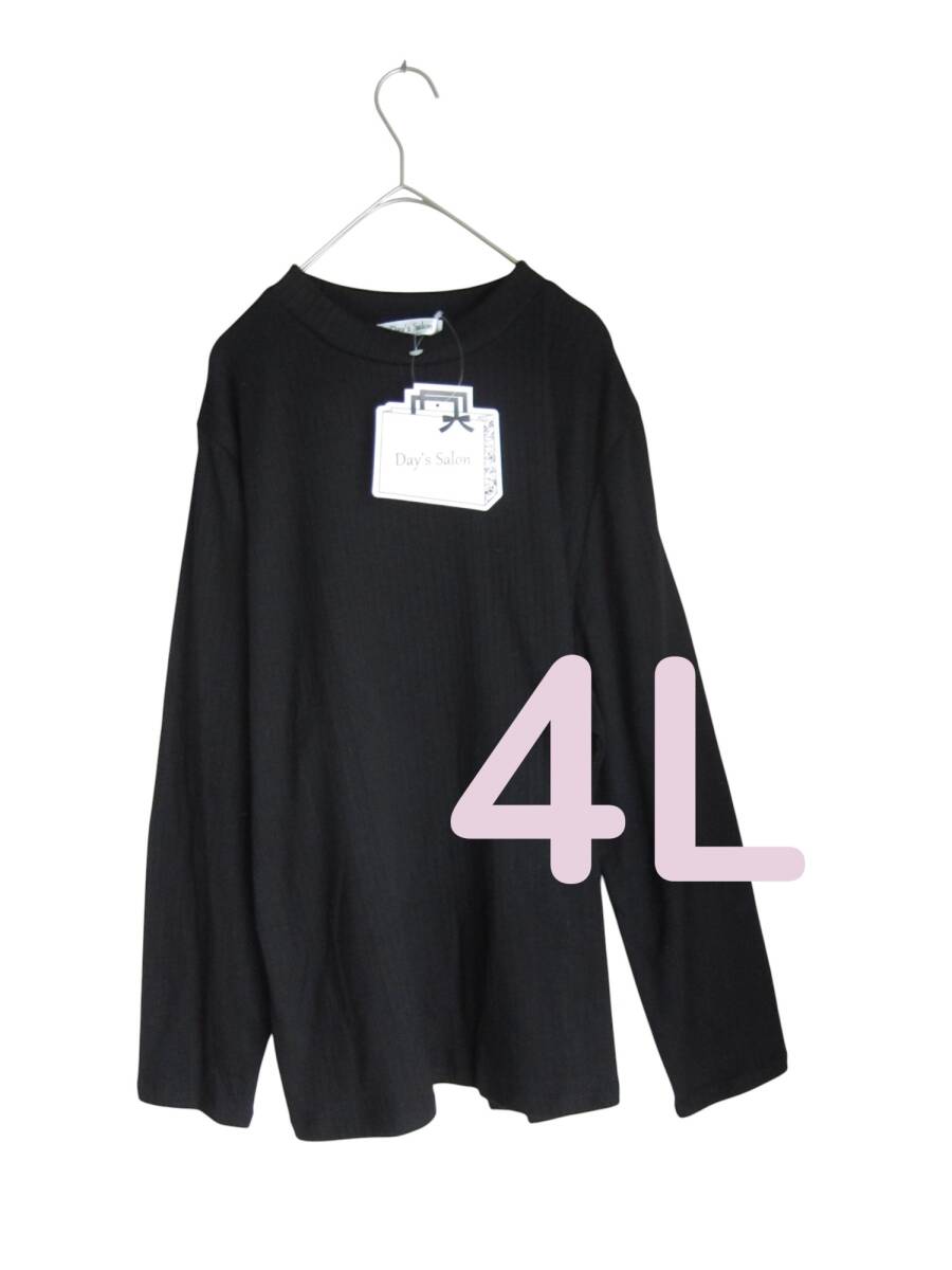 ★送料無料 Z113 新品 【4L】 ~5L着用可 ブラック リブ ハイネック カットソー 長袖 大きいサイズ ゆうパケットポスト