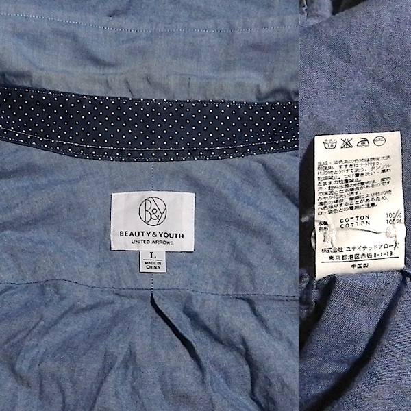 Product name: ビューティー&ユース ユナイテッドアローズ ボタンダウン ドット柄 長袖シャツ ドレスシャツ デザインシャツ 薄手 デニム系 薄い 紺 L