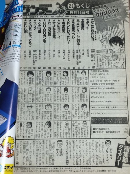 昭和58年■週刊少年サンデー 1983年21号■折込高橋留美子カレンダー/タッチ/うる星やつら/六三四の剣/石森章太郎新連載グリングラス